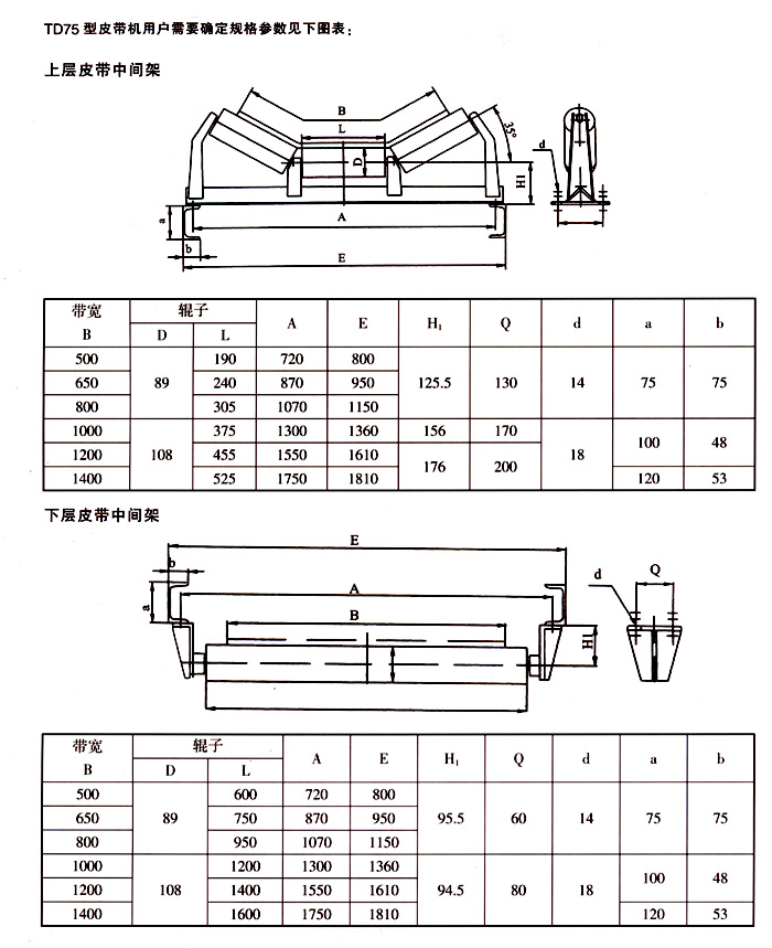 (1)Ⅰ型系列,適用于TD75型皮帶機