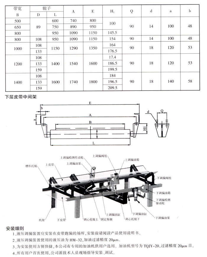 2、液壓調偏裝置不需電源、自動調整、結構簡單、性能可靠、安裝方便。