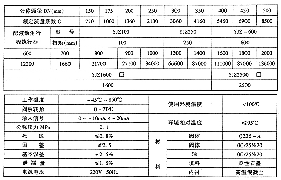 用途 本碟閥與電液動角行程執行機構配套使用,在冶金、建材、化工、電力等生產過程中、對管道中的高溫介質按不同的控制信號改變其流量大小,從而實現工業生產過程的自動控制和遠程控制。 主要技術參數