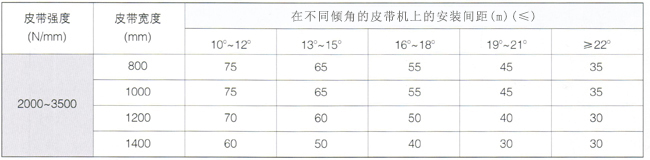 上斷帶抓捕器的安裝間距(m)-(參考值)